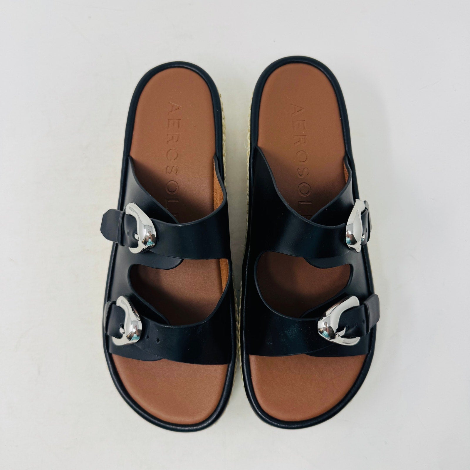 Aerosoles Women’s Size 10 Black Buckle Platform Sandals Espadrille Wedge Slides