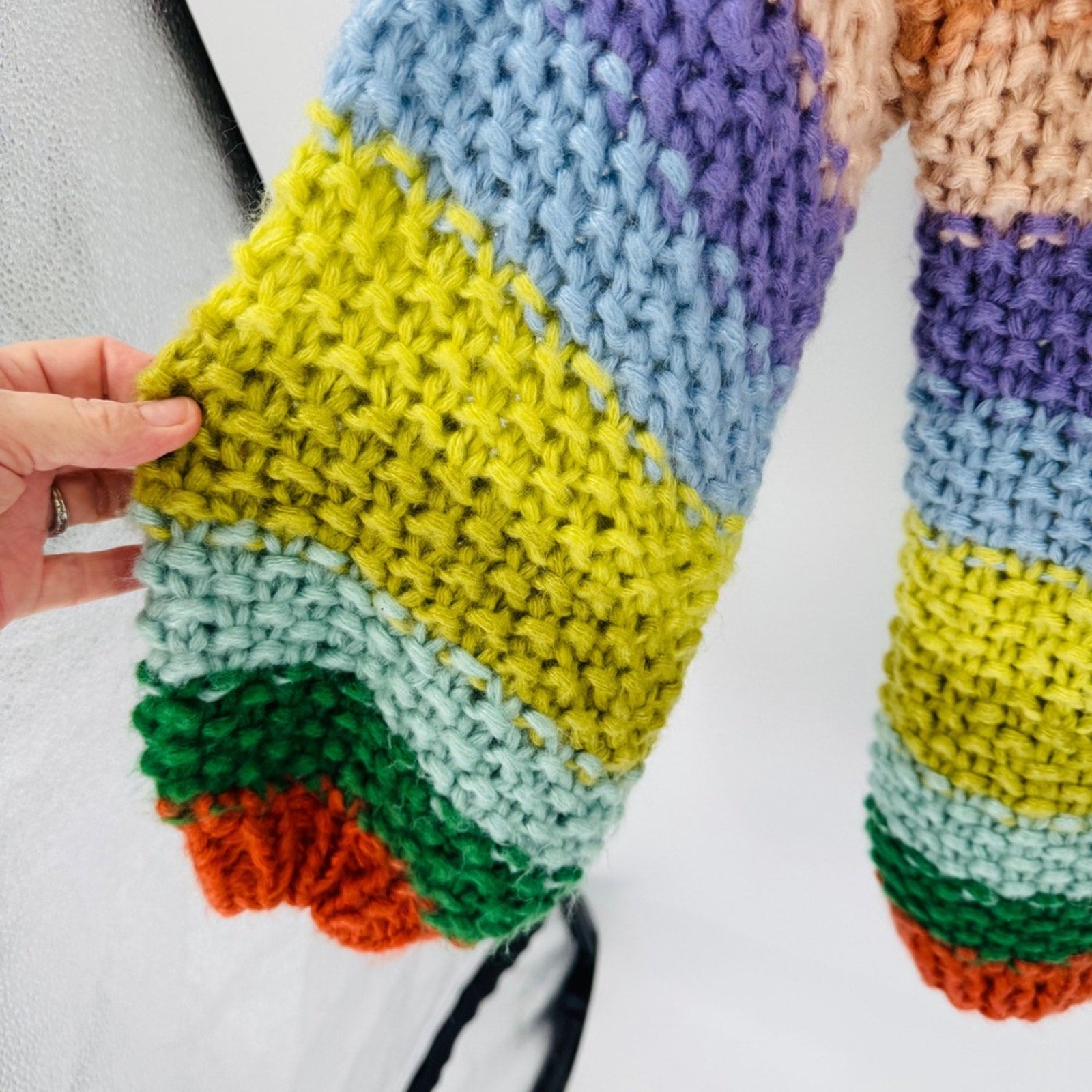 FRNCH PARIS Rainbow Stripe Chunky Knit Open Front Cardigan Sweater O/S