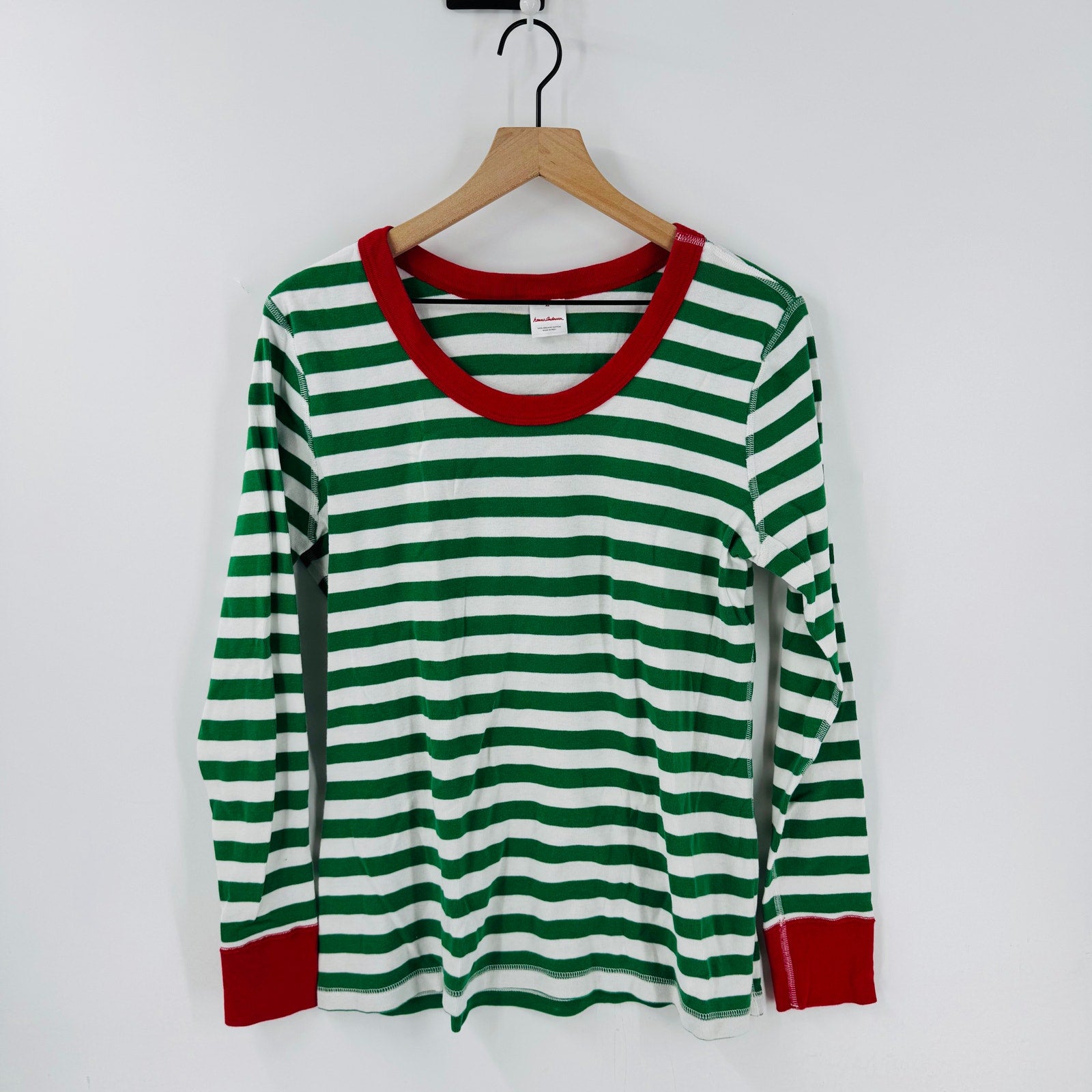 Hanna Andersson Women’s Green White Stripe Christmas Holiday Pajama Shirt XL