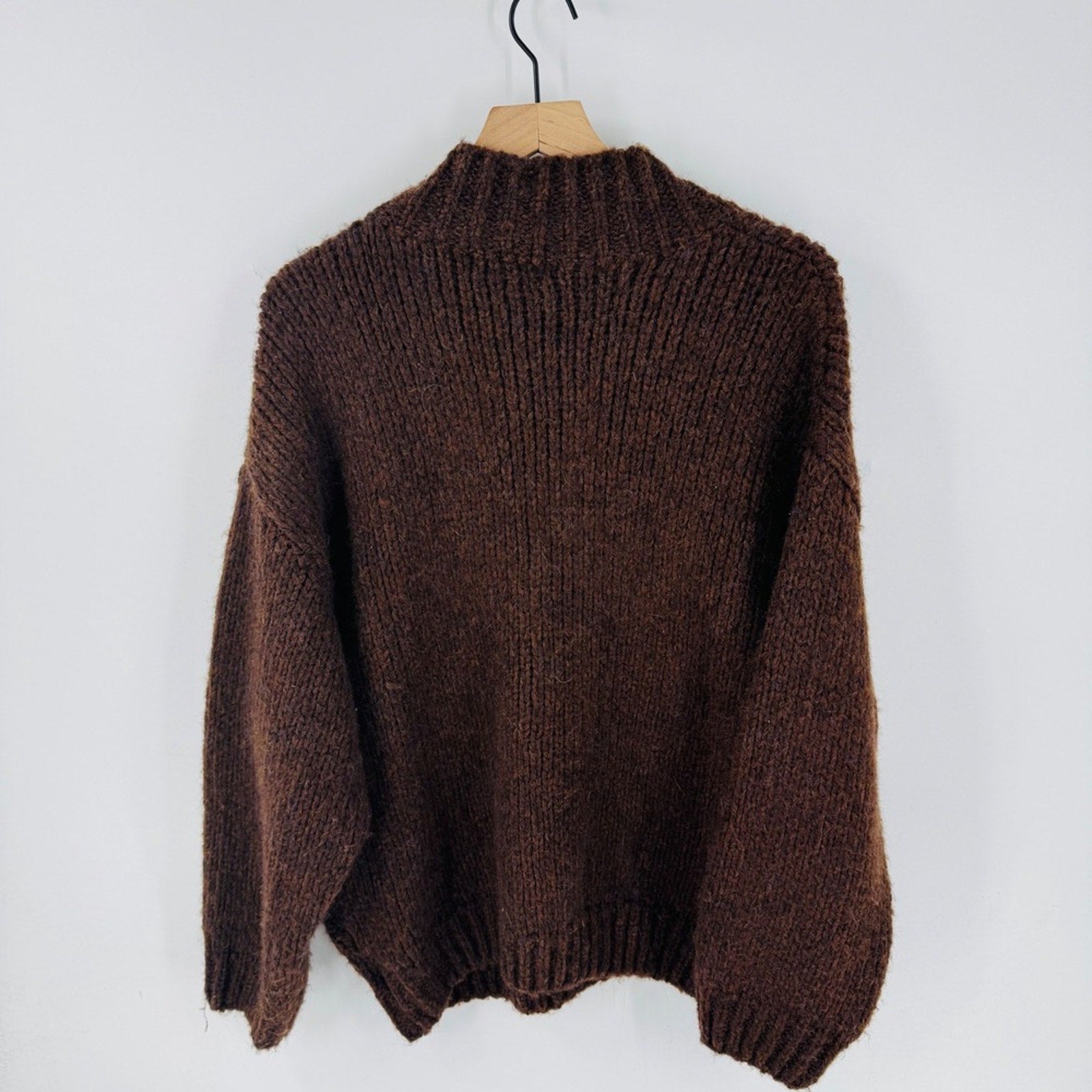 Knit Mix Brown Chunky Knit Oversized Mock Neck Cozy Sweater Size L Goblincore