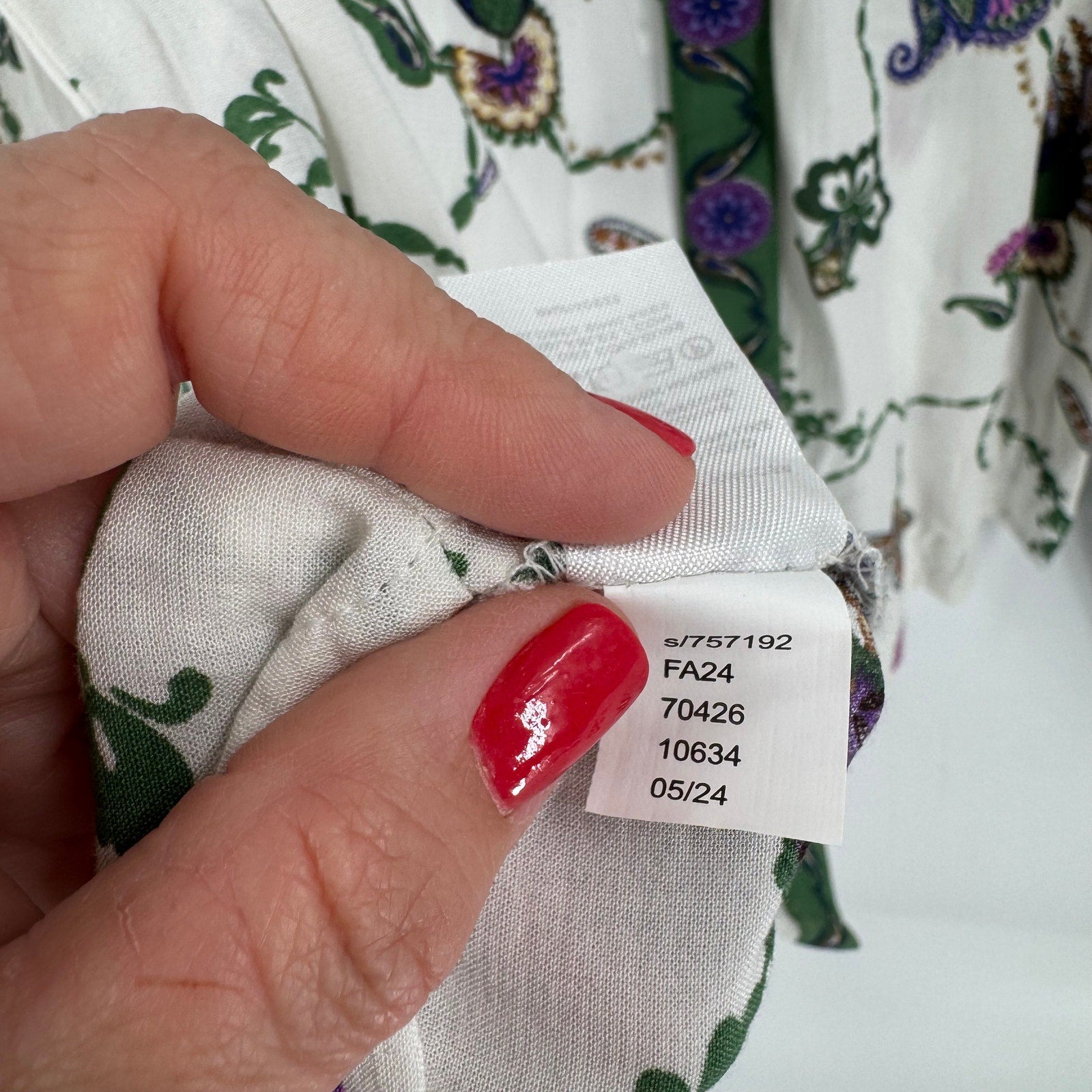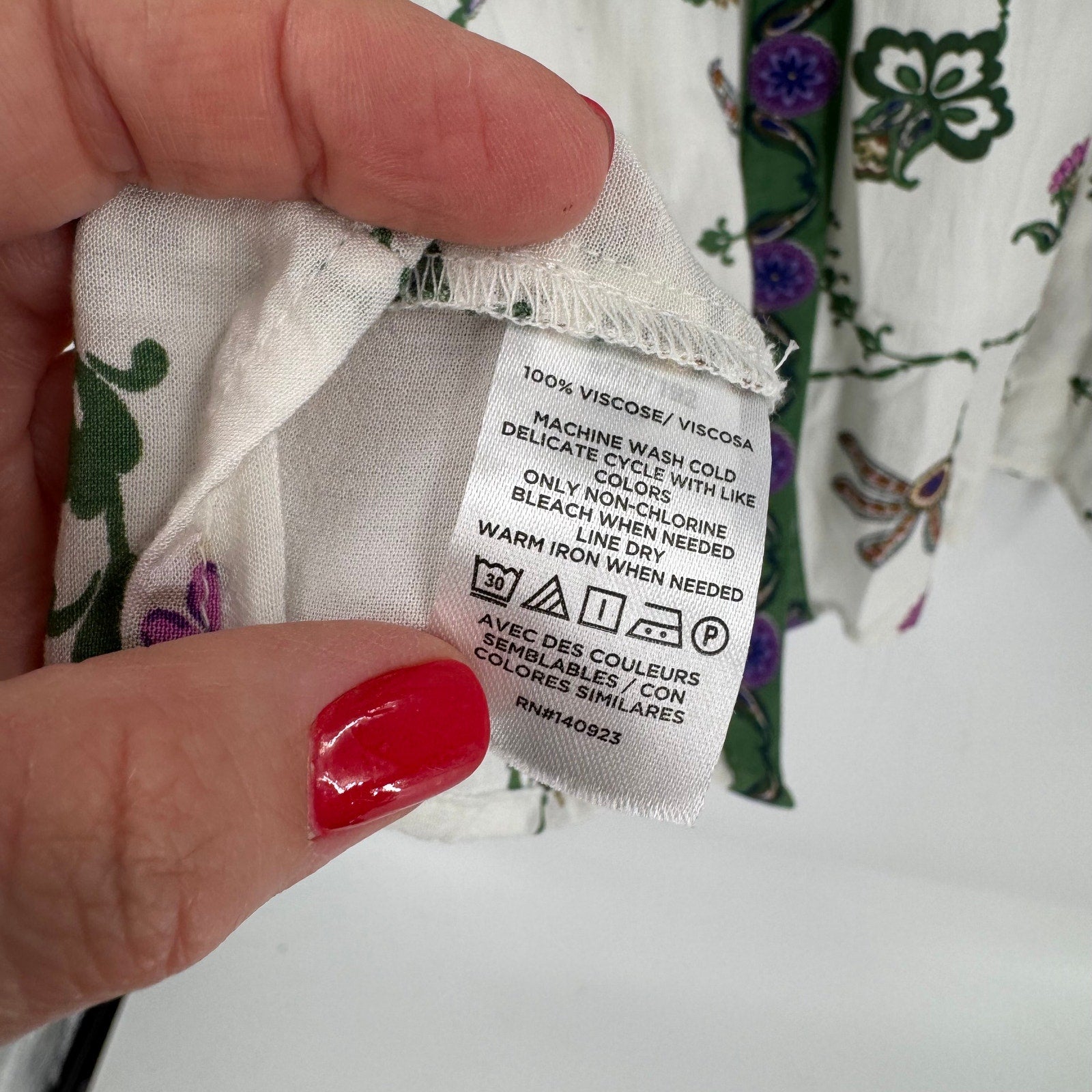 Beautiful LOFT blouse featuring an intricate green and purple floral peacock bird pattern. Button-front design with contrast trim, front pockets, and gathered sleeves. Soft, lightweight fabric with a romantic boho feel. Women’s size XS.