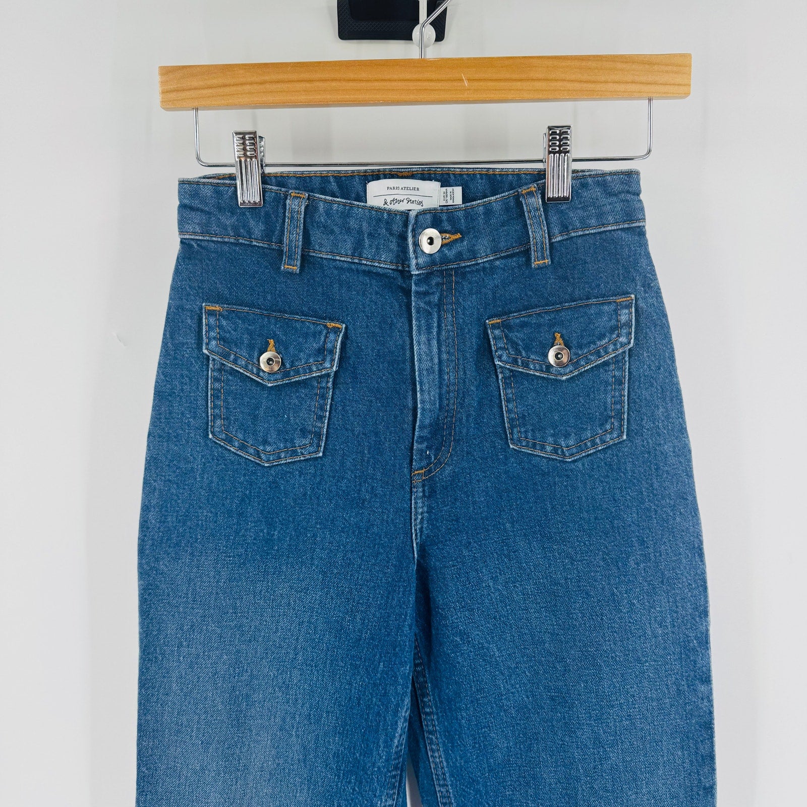 & Other Stories Flared Patch Pocket Jeans High Waist Blue Denim Size EU 34