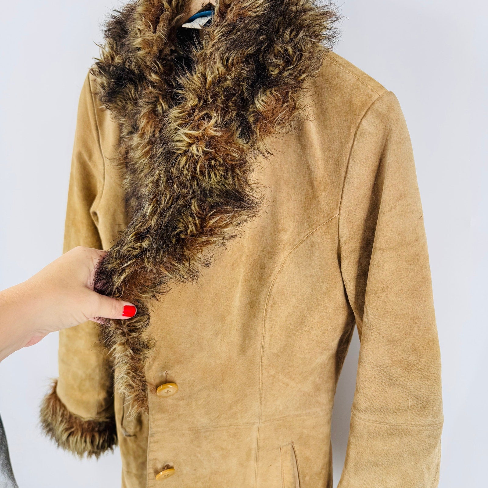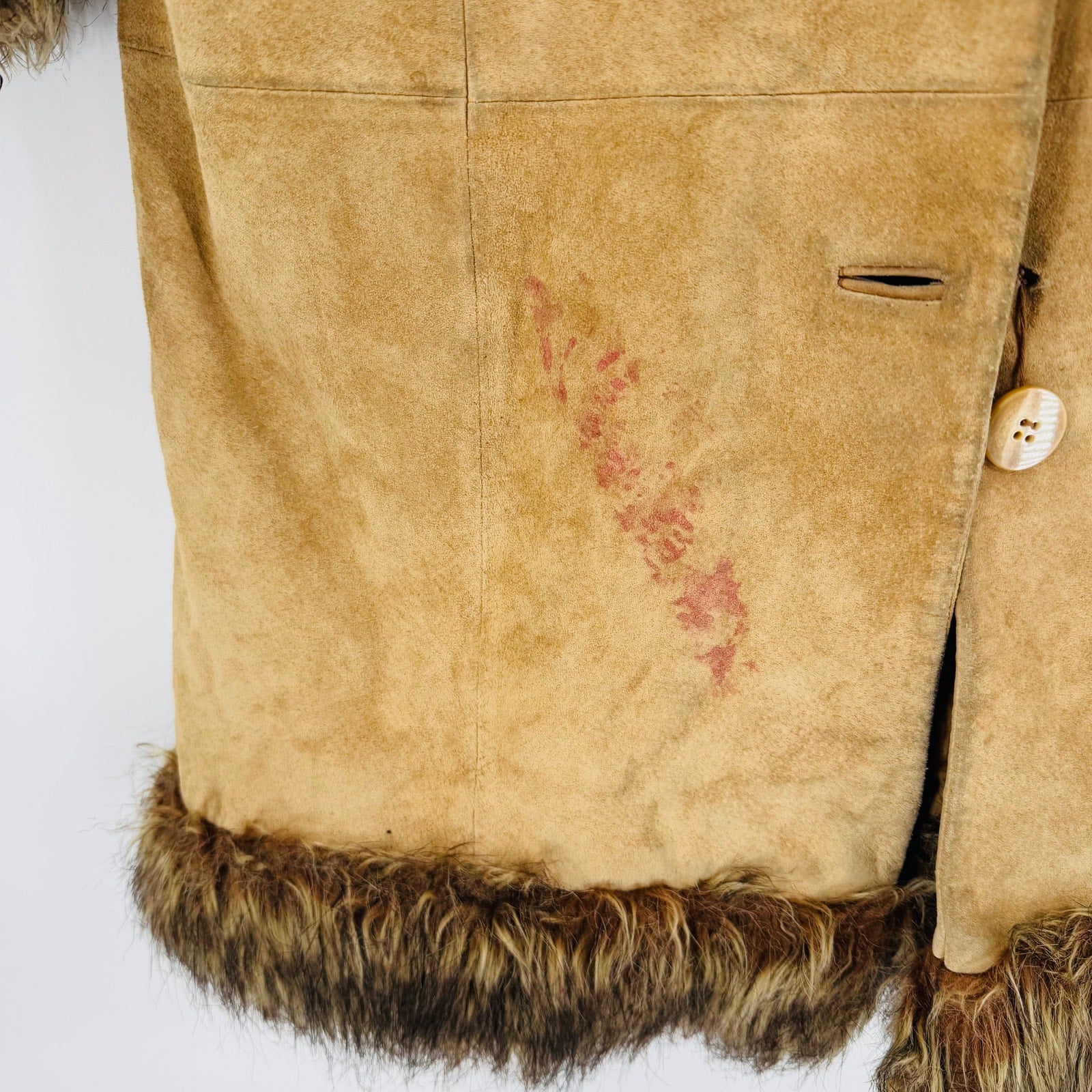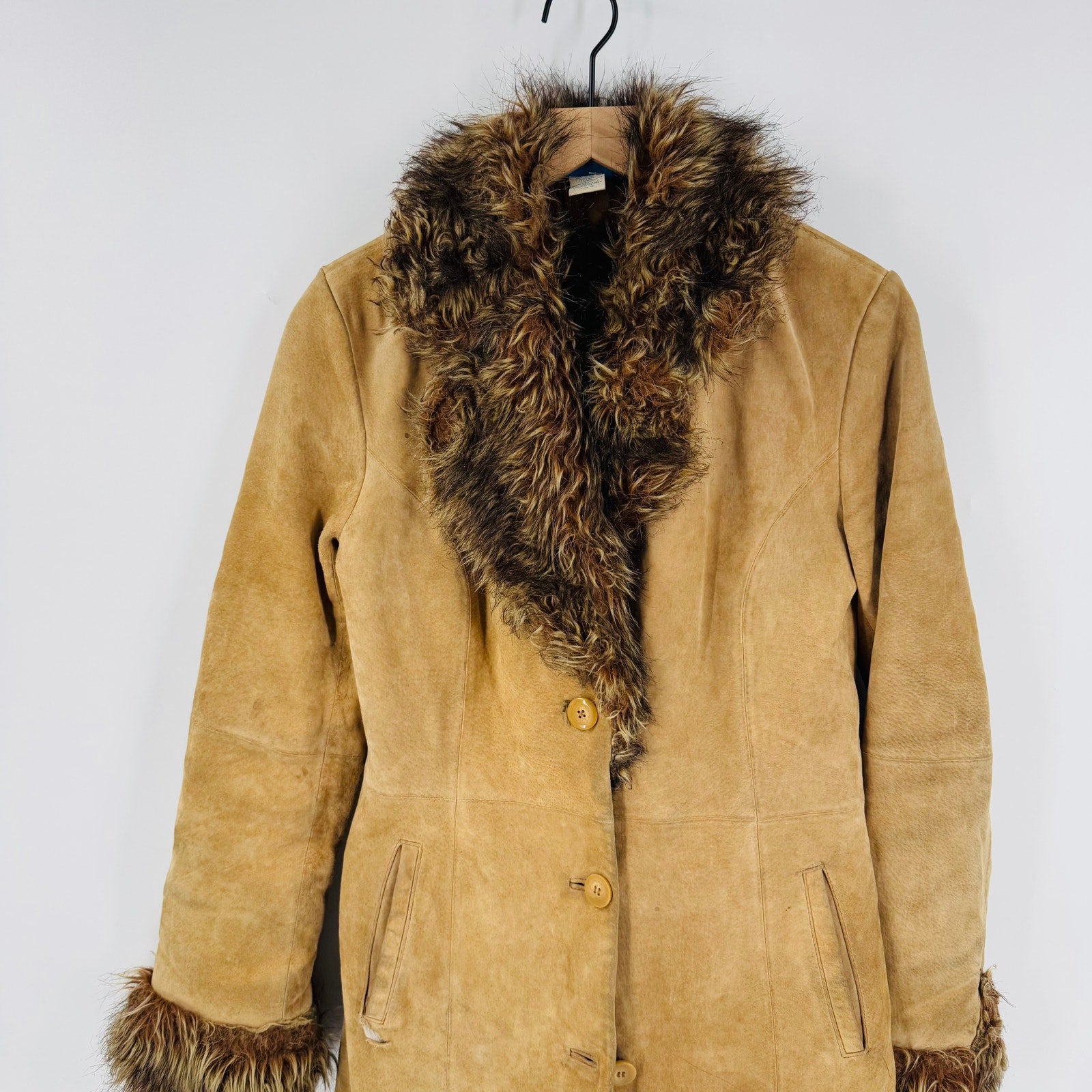 Vintage Delia’s Suede Faux Fur Penny Lane Coat Camel Brown Size S Small