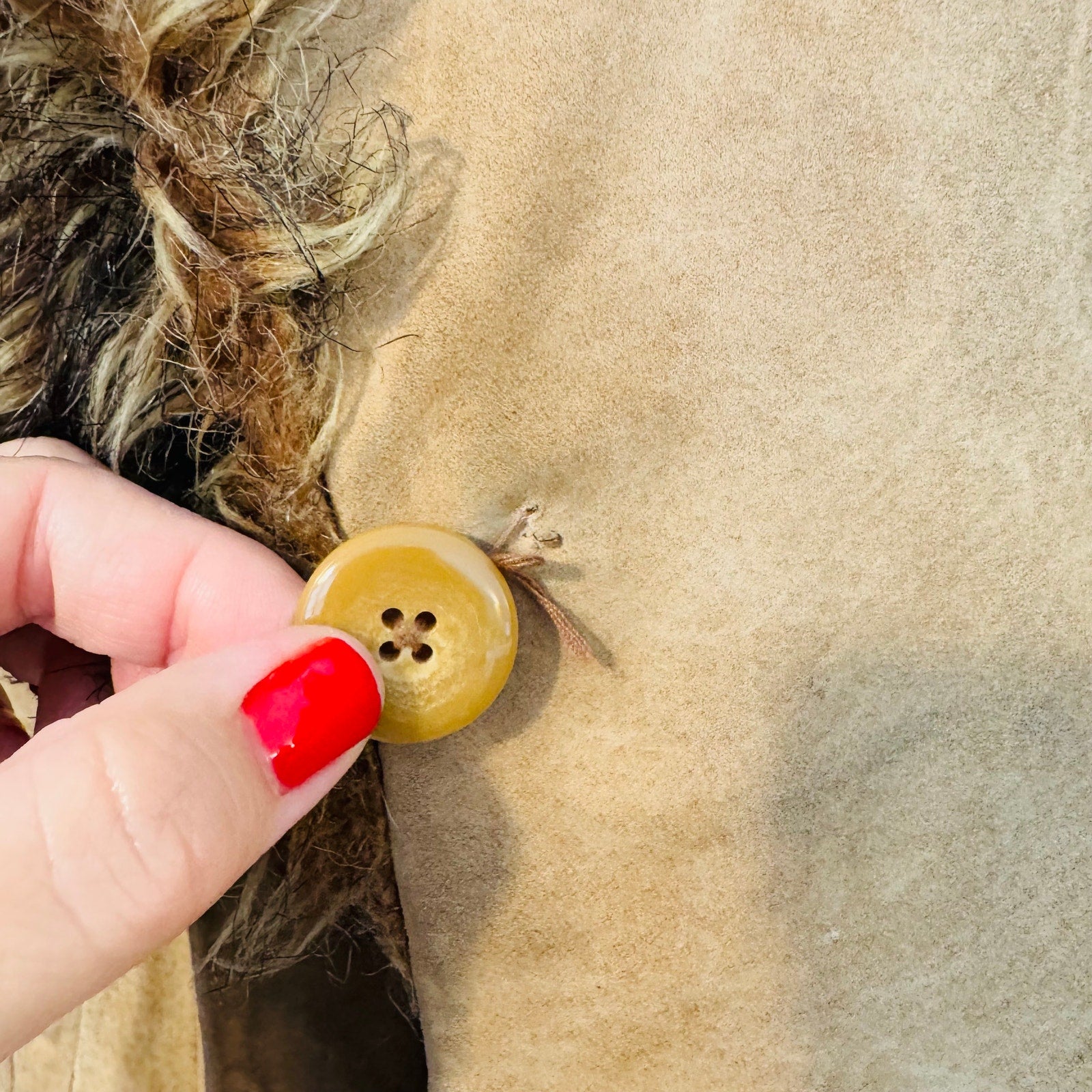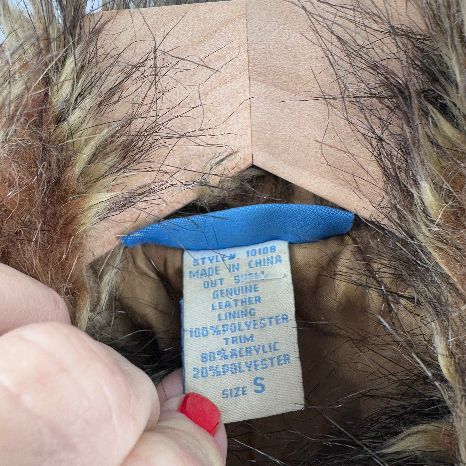 Vintage Delia’s Suede Faux Fur Trim Coat Camel Brown Button-Down Size S Small