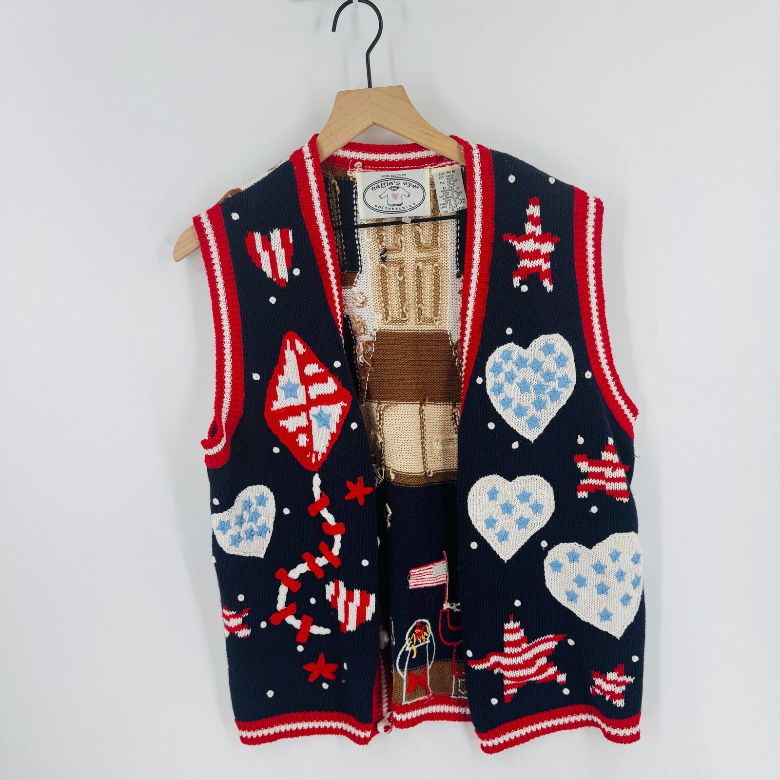 Vintage Eagle’s Eye Collectibles Patriotic Knit Vest Sleeveless V-Neck Size M
