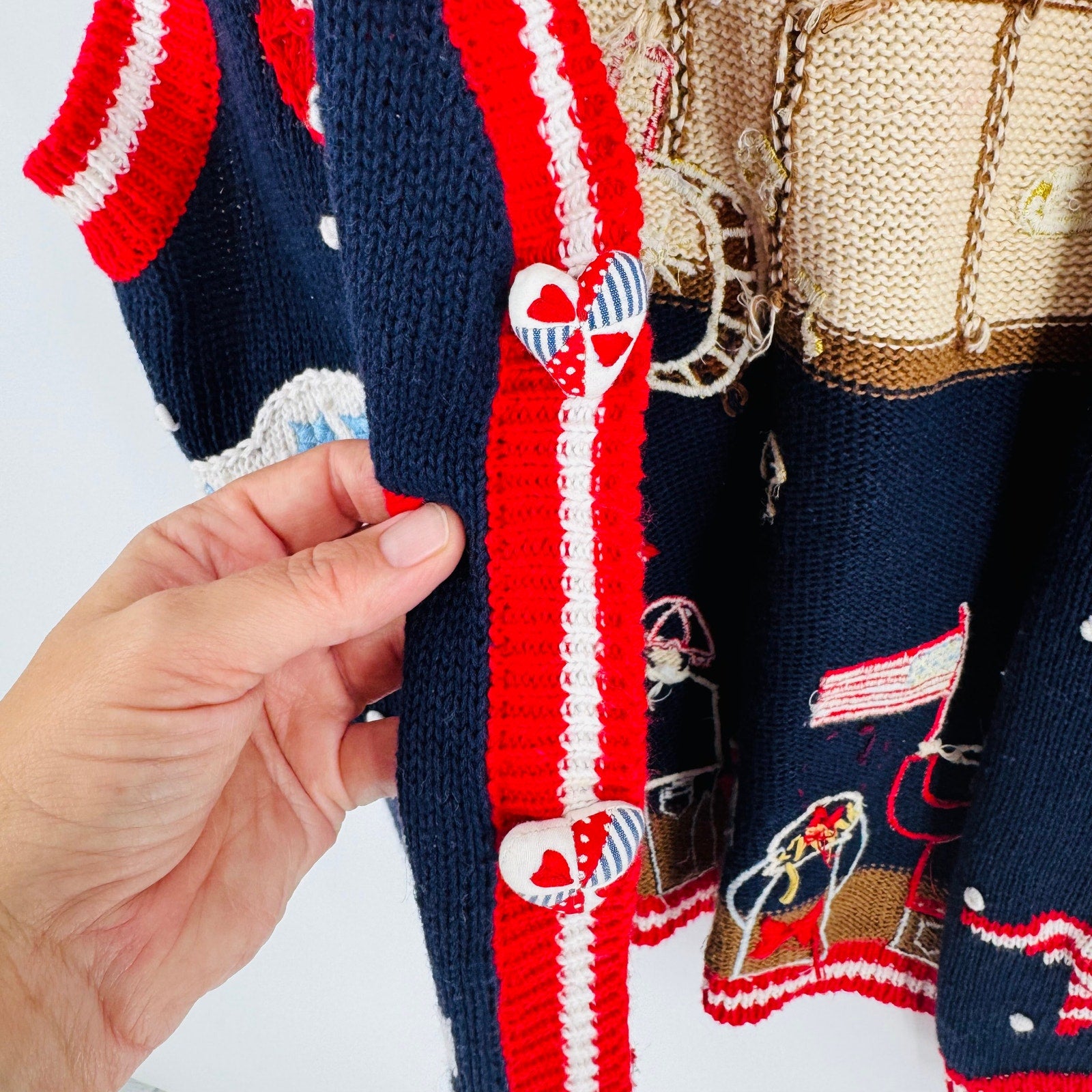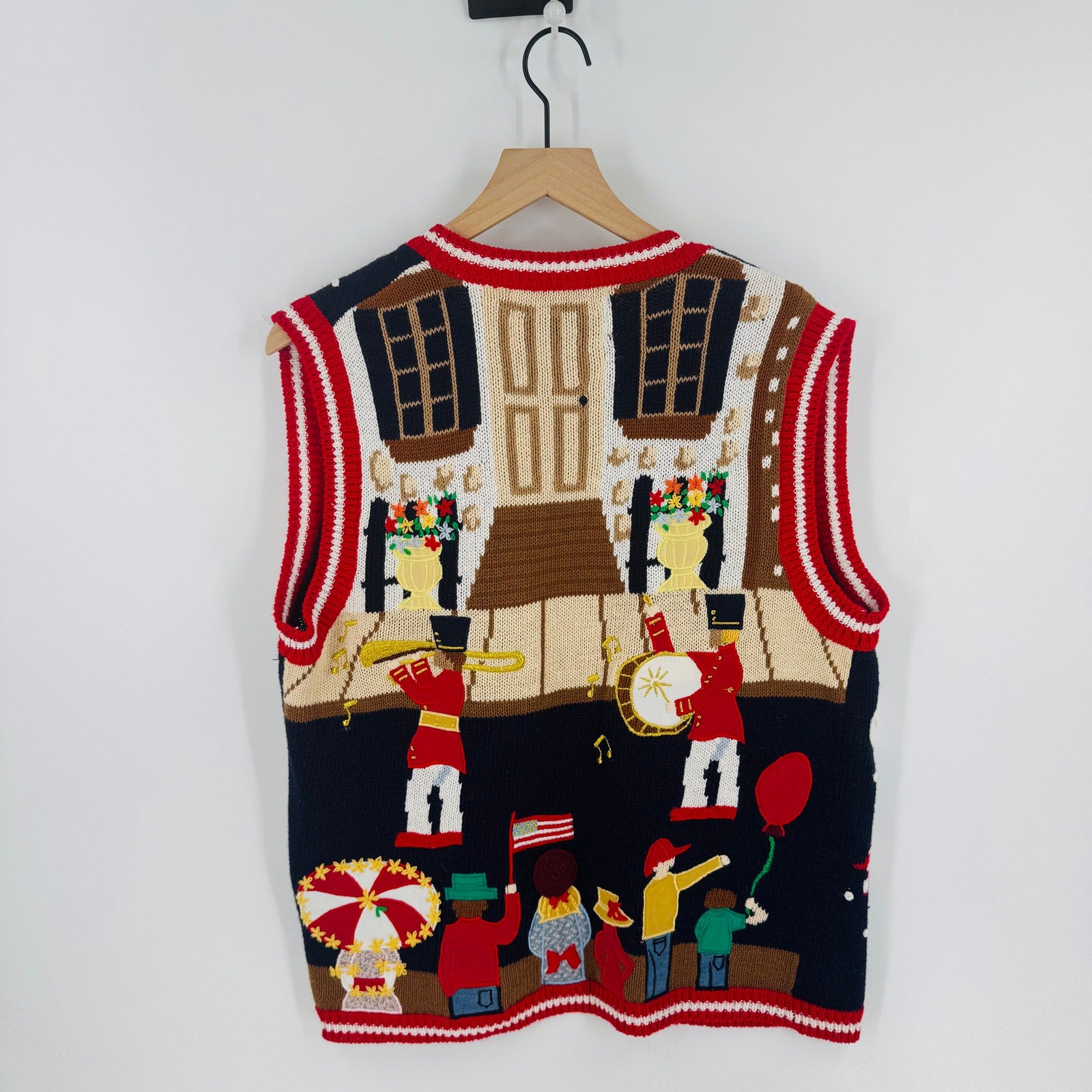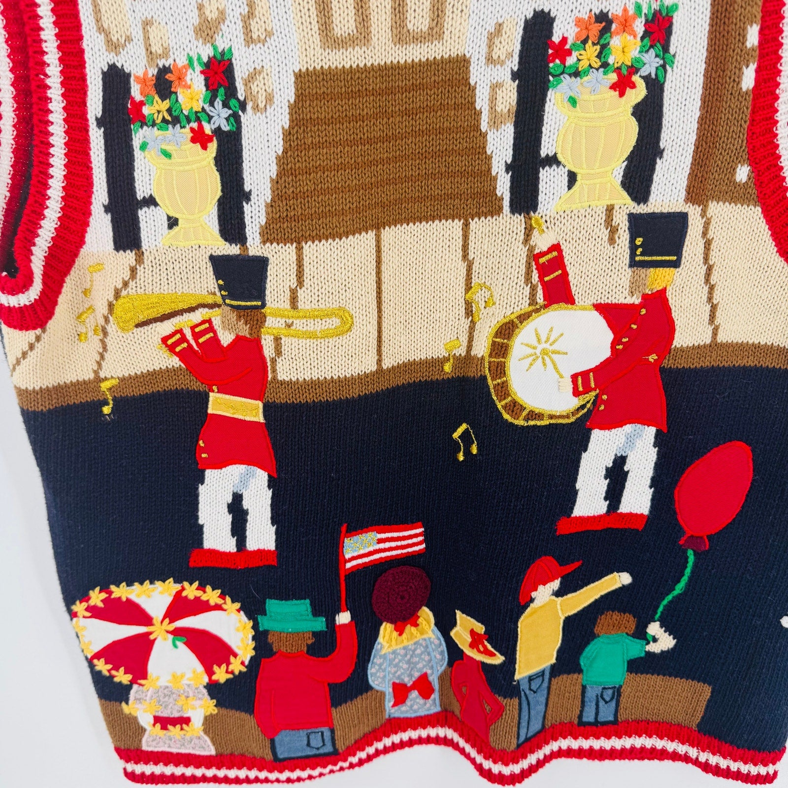 Style: Button-Front Sweater Vest with Patriotic Scene